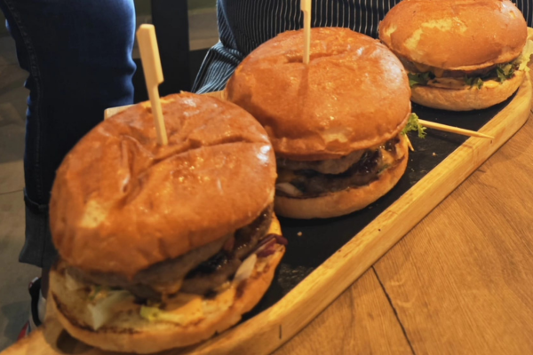 (juneće roštilj meso 120g, pomfrit 200g, kajzerica, čedar sir, burger sos hainz, kiseli krastavac, kečap, mix zelenih salata, crveni luk, pančeta, gorgonzola)