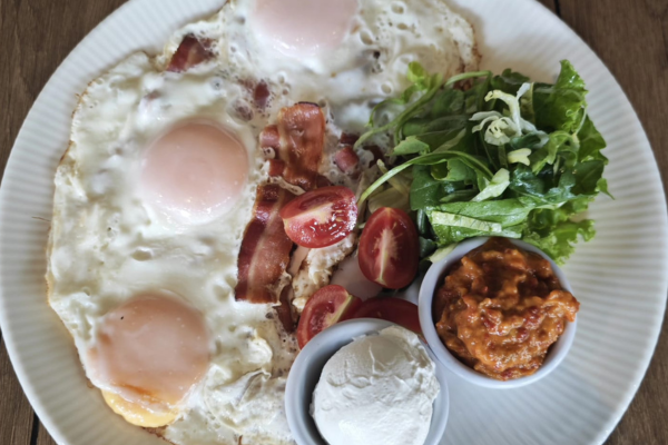 (pančeta, verde namaz, kačkavalj, mix zelenih salata, jaje, panini)
