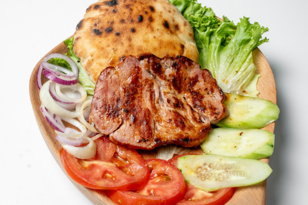 (juneće roštilj meso, crni luk)