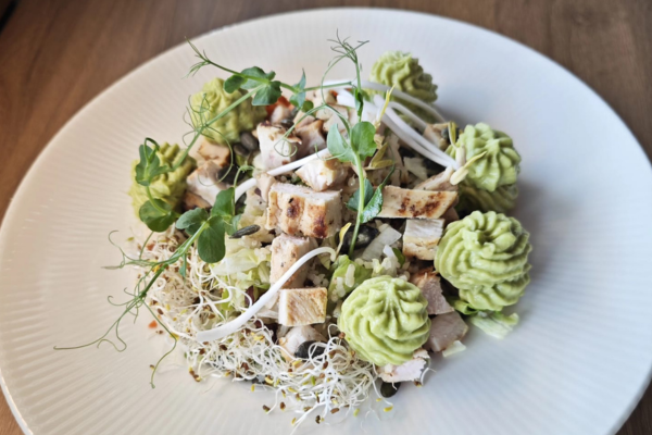 (pileći file, kikiriki puter, avokado, pančeta, mix zelenih salata, panini)