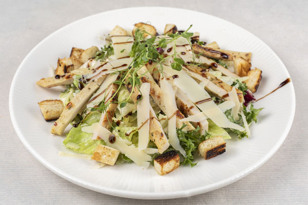 (mix zelenih salata, pileći file, parmezan, pančeta, cezar dresing, krutoni)