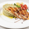(file lososa, pirinač, pesto sos, svež bosiljak)