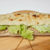(rio mare tuna, biljni kačkavalj, pelat, ljubičasti luk, mix zelenih salata, panini)
