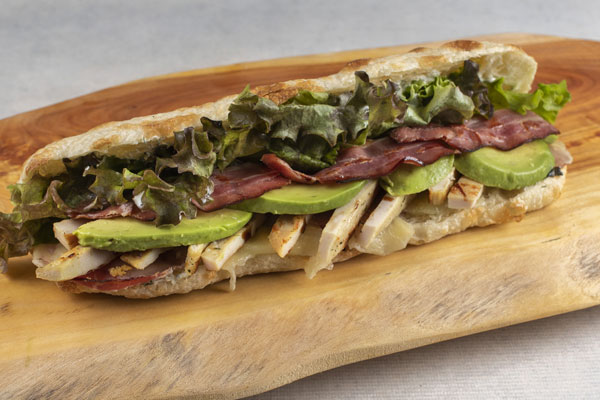 (pileći file, kikiriki puter, avokado, pančeta, mix zelenih salata, panini)