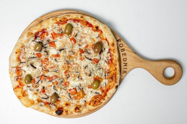(pelat, kačkavalj, ljubičasti luk, masline, origano, paradajz, šampinjoni)
