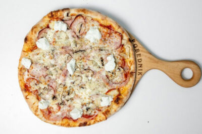 (pelat, kačkavalj, dim. svinjski vrat, rukola, čeri, parmezan)
